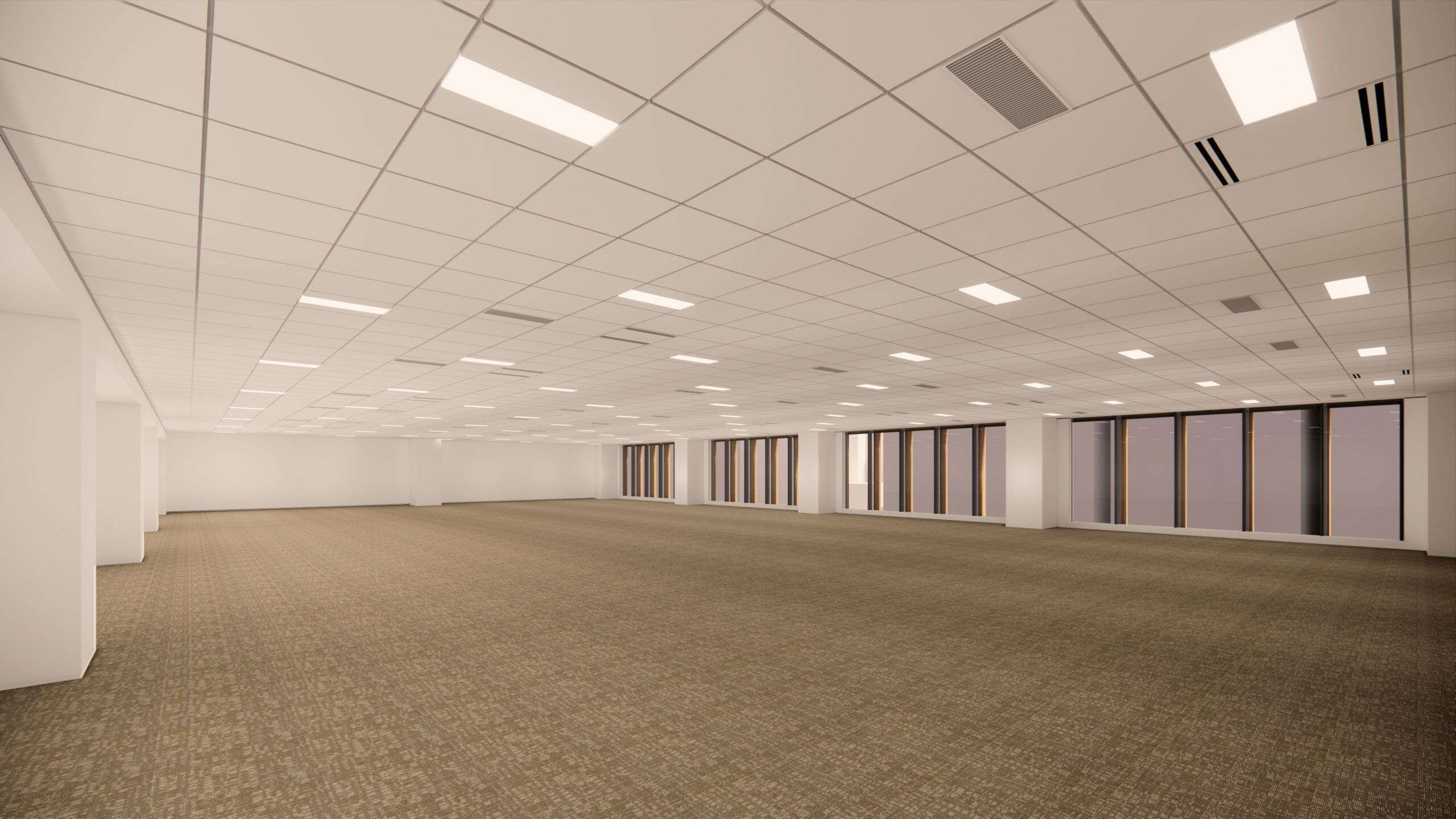 テストキッチン対応可能、整型な約168坪のオフィス空間。